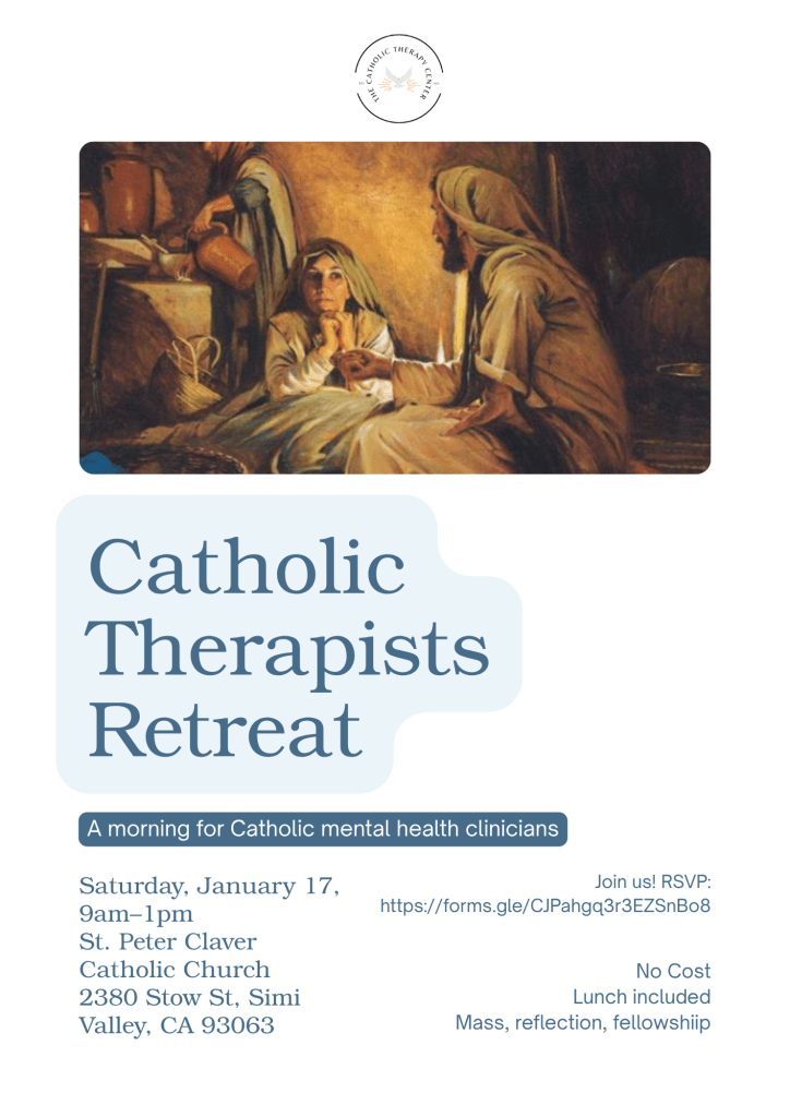 The Catholic Therapy Center hosts yearly retreats for Catholic clinicians and the general public, such as the Catholic Therapist Retreat, Lenten Retreats, and Healing Anxiety Retreats.